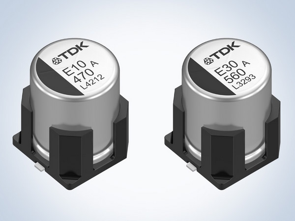 TDK Corporation expands its B409x series of SMD hybrid polymer aluminum electrolytic capacitors with a design that can withstand mechanical vibrations of up to 30g (MIL-STD-202, Method 204). This is achieved by four posts that come out of the base plate of the component and stabilize the can in the event of mechanical shocks and vibrations. The design is offered with part number suffix 100 (standard types: 000), and these components are generally used in demanding automotive and industrial applications.